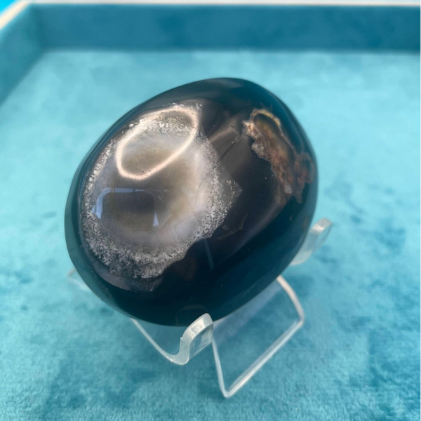 Black Flower Agate Palm Stone (Stock No.739)